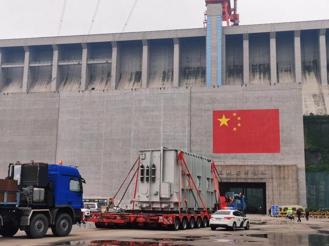 三峽電站500千伏備用主變壓器長10.37米、寬3.85米、高4.9米,重量達380噸,相當于200輛小轎車的重量,轉運起來實屬不易。